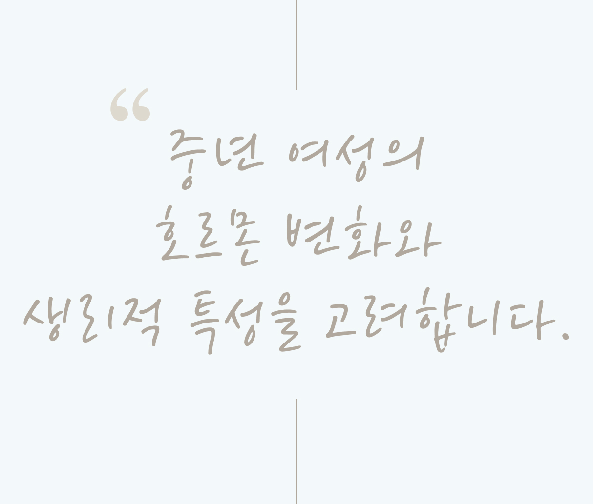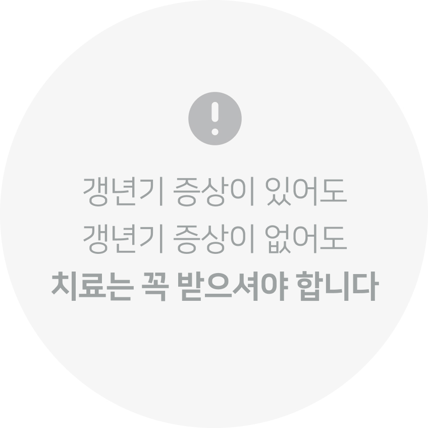 갱년기 증상과 동반되는 부인과 · 내과적 질환도 함께 관찰하며 유연하게 치료 방향을 조정합니다.