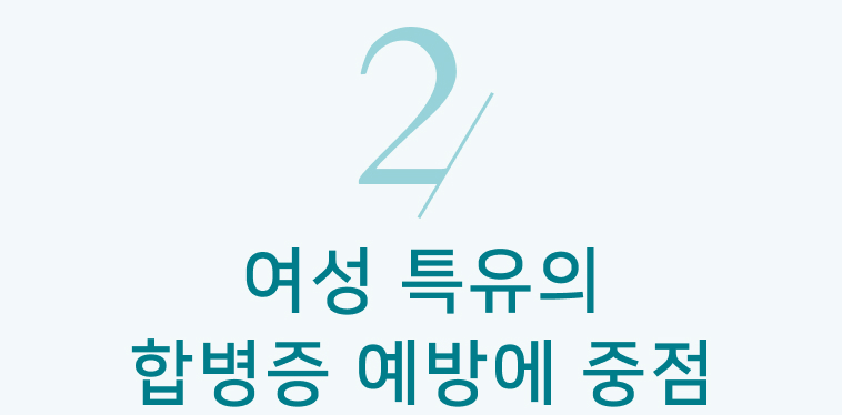 여성의 생리적 특성과 생활 습관을 반영한 맞춤형 접근으로 여성 환자에게 최적화된 진료를 제공합니다.